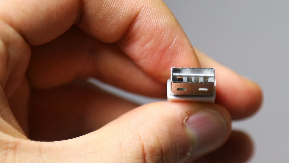 네 개의 접점이 필요한 USB 표준 규격에 맞추기 위해, 가운데 얇은 단면에 양쪽에 모두 네 개의 접점을 넣어 해결했다. 이 중국산 모조품은 영상처럼 다소 뻑뻑한 장착감을 느끼게 해줘서 아쉽지만, 애플이 만든 양면 USB를 더욱 더 궁금하게 만든다.
